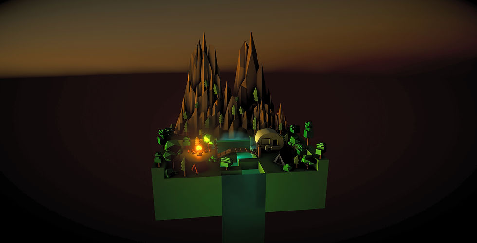 Created using low-poly asset modeling techniques with Cinema 4D and Unity, this rendered still image represents a rare and unique setting that captures many details and qualities of a beautiful outdoor paradise.
